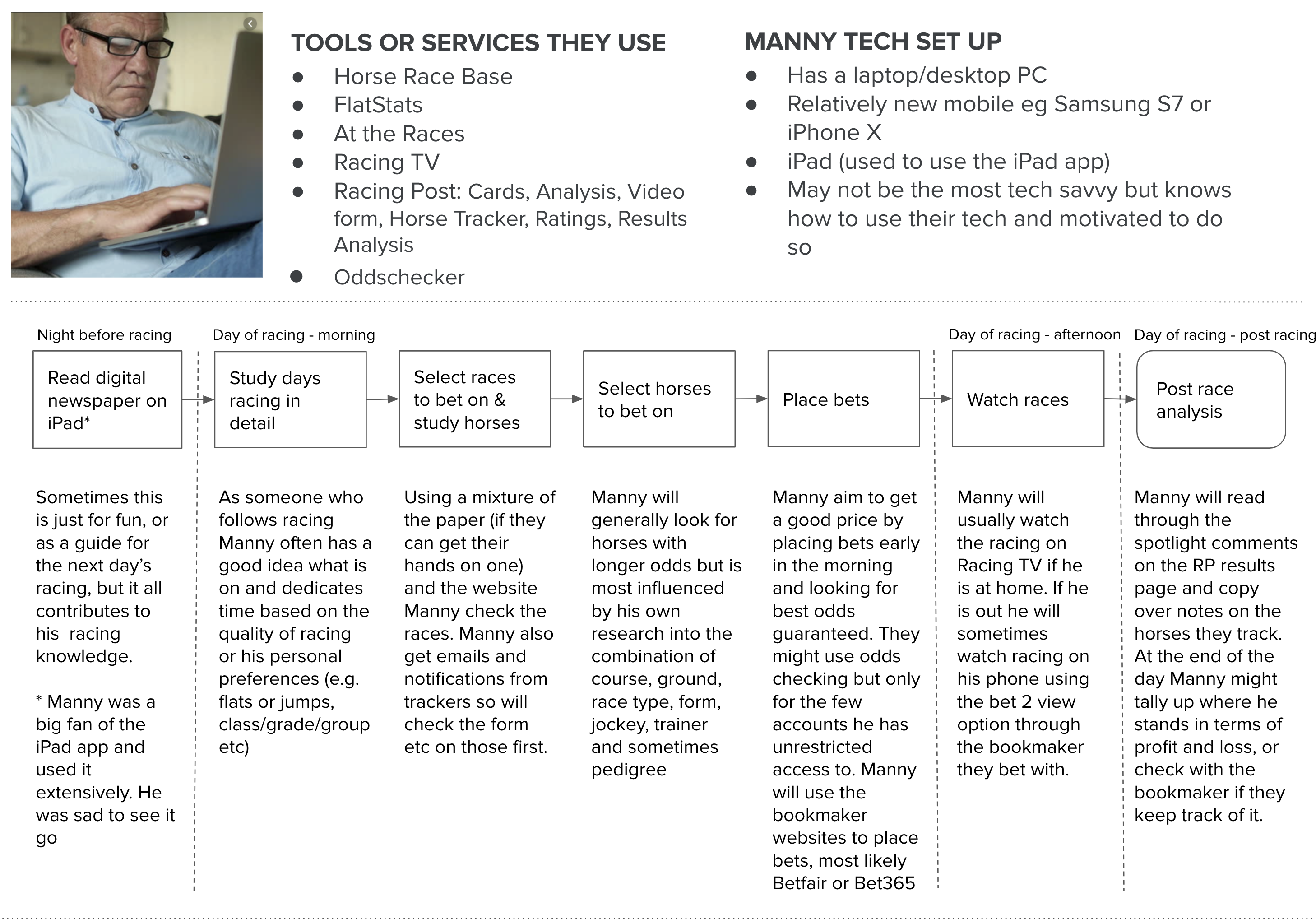 Kick-off: Getting agreement on strategy, outcomes, and larger processes. This was the main part of my role on this initiative. That and to get the rest of the company to buy into the importance of user input. Trust was still being built on all sides between product, data, editorial, design, research and tech. My role was to get agreement with the Director of Racing, the CTO, CPO and the Editor in Chief  on what good user and business metrics looked like within the budgets / timelines.